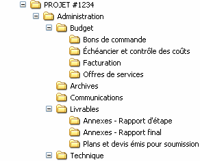 Notre plan de classement par projet se limite donc à trois niveaux et un maximum de six sous-dossiers par niveau.